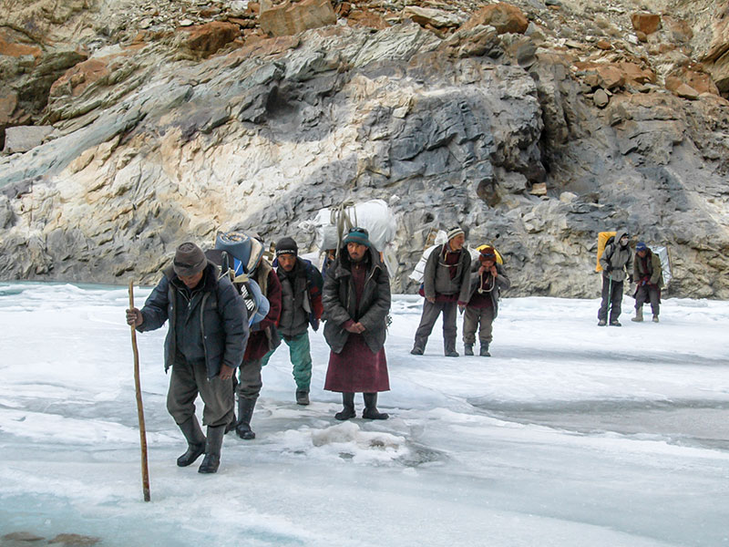 Today you start the return journey and go back to the Tibb cave. And if you thought that it was just a matter of retracing your steps back to Chilling, you can think again. The Zanskar River reacts to the slightest change of temperature, and constantly keeps repackaging itself. The Chadar would have assumed a completely new form, and will it will almost be impossible to say whether you have been here before.